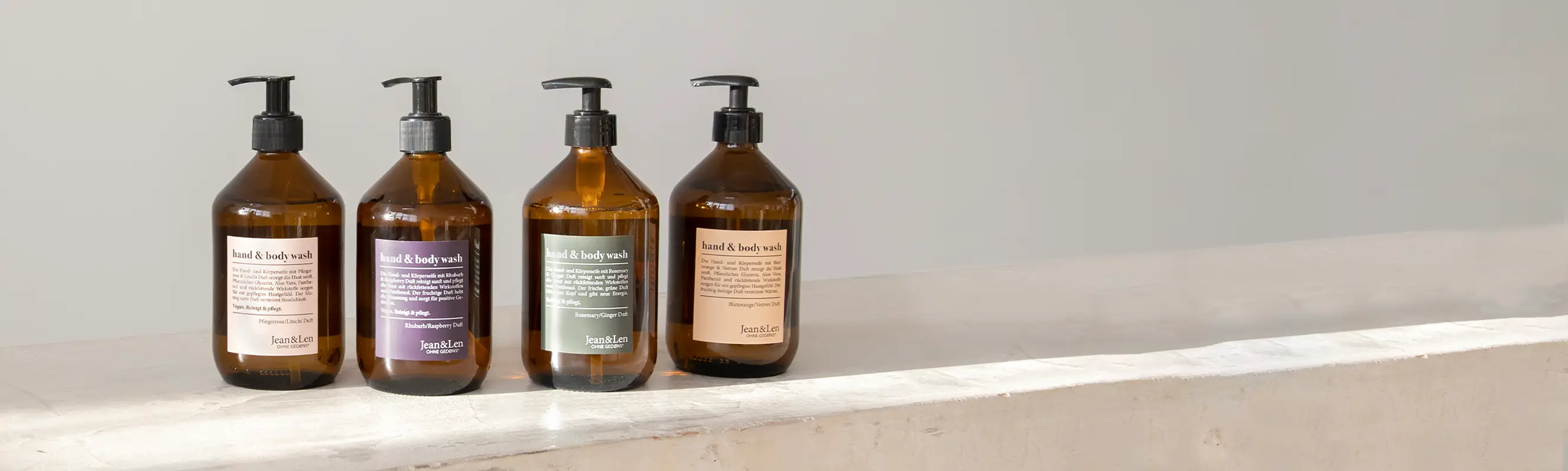 Mit Jean&Len bringen wir frischen Wind in die Welt der Pflegeprodukte. Statt langweiliger Verpackungen bieten wir coole Designs und statt muffig riechender Naturkosmetik gibt es bei uns duftende und performancestarke Produkte, die frei von tierischen Inhaltsstoffen sind. Ohne Gedøns* ist dabei unsere Philosophie – wir verzichten auf Inhaltsstoffe, die Len persönlich auch nicht in seiner Pflege haben möchte. Doch wir wollen Dir nicht nur die passende Pflege bieten, sondern Dich auch jeden Tag zum Schmunzeln bringen. Wenn Du schon mal einen unserer Produkttexte gelesen hast, weißt du sicherlich, was wir meinen! Falls nicht, wird es Zeit, das zu ändern.